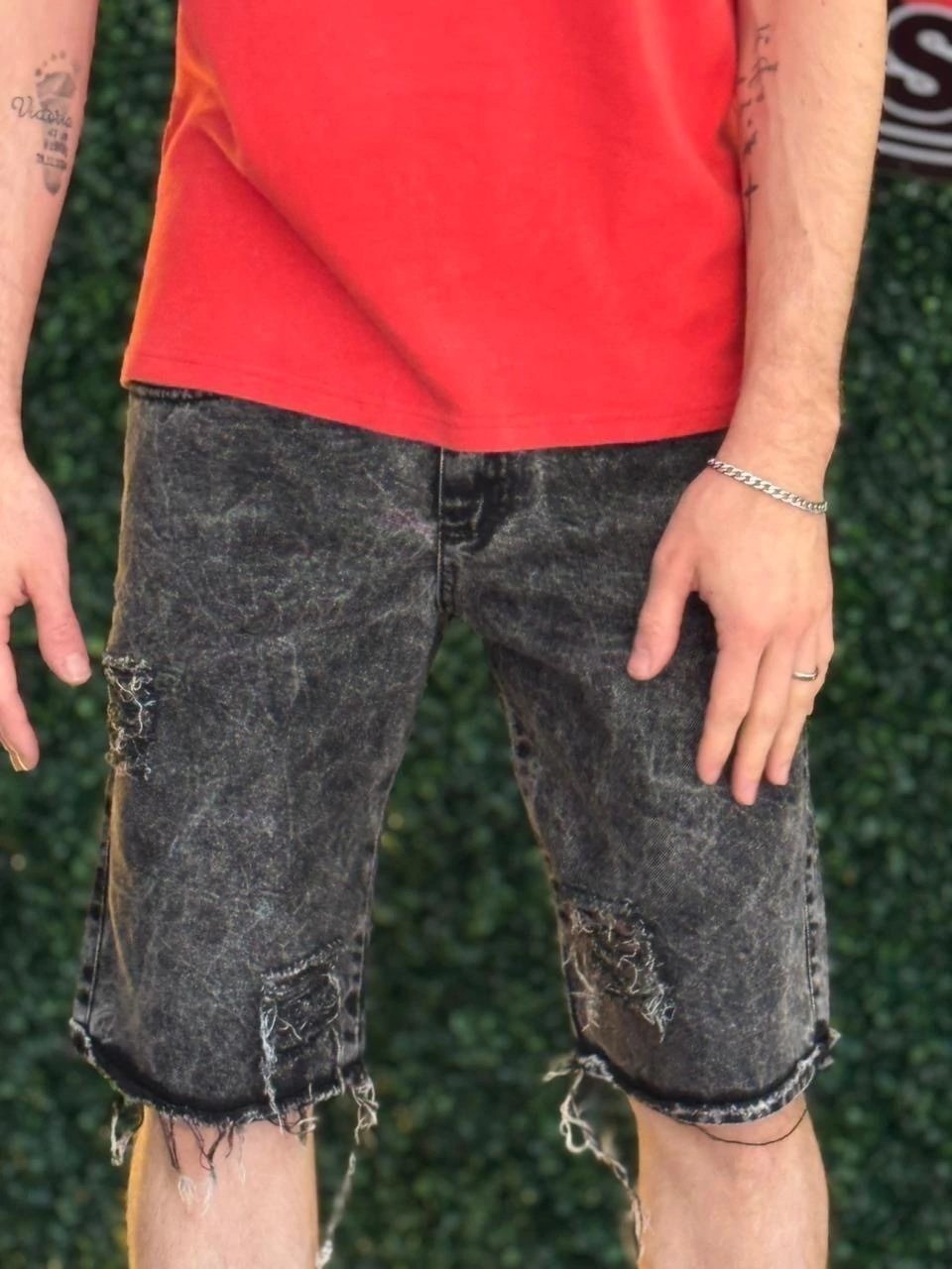 Shorts Jeans Masculino com rasgo e barra desfiada M3753